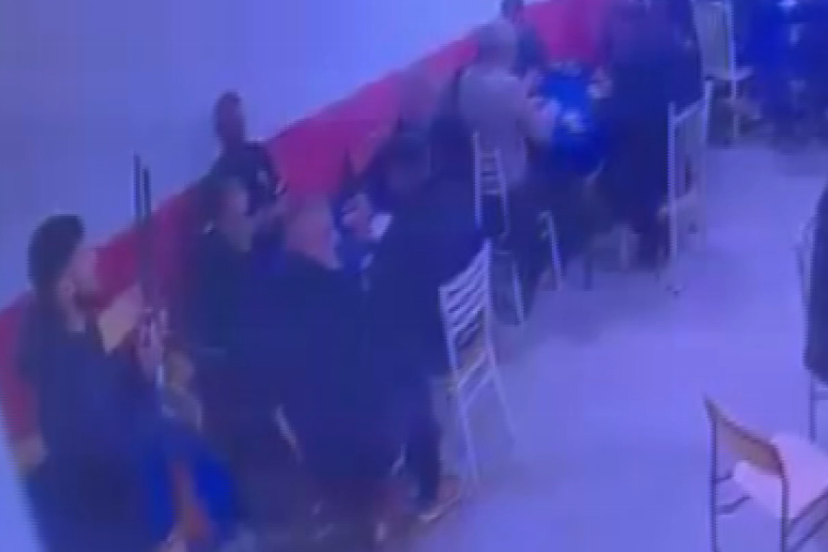 Yaşanan arbede sırasında tüfek kazara ateş aldı. O anlar güvenlik kamerasıyla kaydedildi.