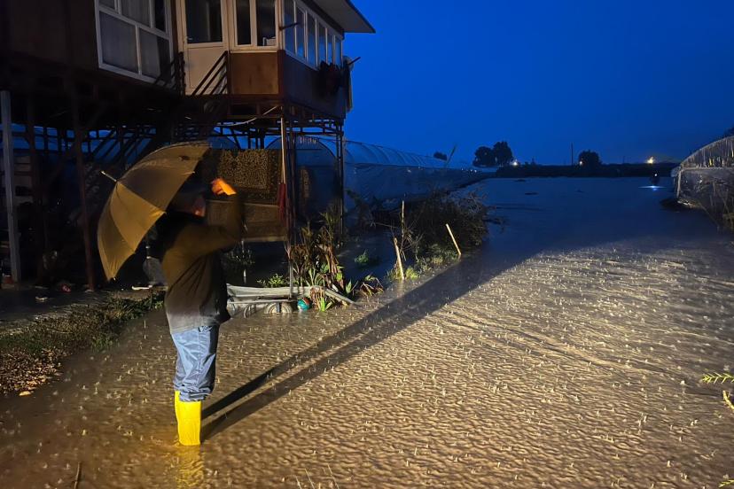 Su baskınları, seralarda ve bölgedeki işçi evlerinde hasara yol açtı.