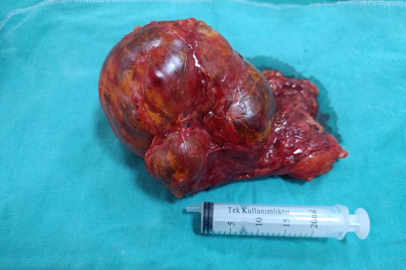 Yaklaşık dört hafta önce karın ağrısı şikâyeti yaşayan Nida Seydo (48), Malatya Eğitim ve Araştırma Hastanesi'ne başvurdu. Yapılan muayene ve ileri görüntüleme tetkikleri sonucunda sol sürrenal (böbrek üstü) bezinde yaklaşık 20 santimetre boyutunda kitle tespit edildi. Bunun üzerine hasta için cerrahi müdahale kararı alındı.