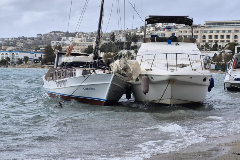 Fırtına sebebiyle Gümbet Koyu'nda demirli tekneler kıyıya sürüklendi. İlk olarak bir motoryat ile katamaran tipi yelkenli kıyıya sürüklendi. Tekneler, daha fazla hasar almaması için karaya bağlanarak sabitlendi.