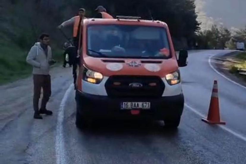 İLKHA'nın gündeme taşıdığı kazanın ardından Bursa-Orhaneli yolunda yola dökülen mazot temizlenerek trafik yeniden güvenli hale getirildi.