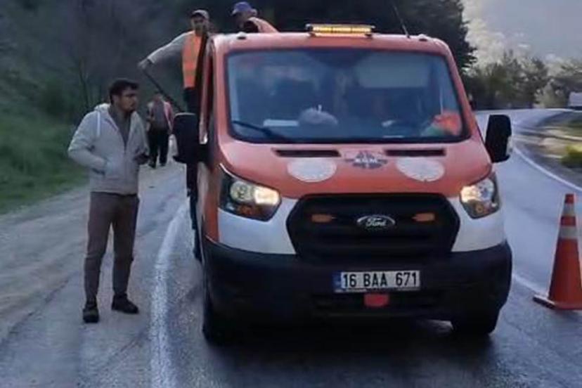 Bursa-Orhaneli yolunda tehlike oluşturan mazot temizlendi