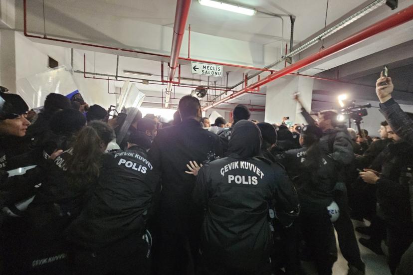 Bursa’da, Büyükşehir Belediye Meclisi’nde yapılması planlanan başkan vekili seçimi öncesinde olaylar çıktı. CHP'li meclis üyeleri bir grup protestocu ile birlikte belediyenin otoparkının kapı camını kırarak meclis salonuna girmeye çalıştı. Polis ekipleri izin vermeyince tansiyon yükseldi, arbede ve gerginlikler yaşandı.