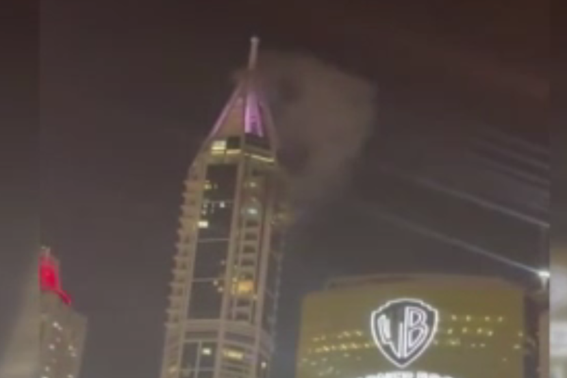 Öte yandan sosyal medyada yer alan görüntülerde, Dubai Marina Kulesi'nin üst katlarından birinde duman yükseldiği görüldü.