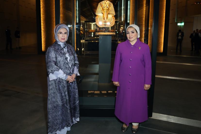 "Resmi ziyaretimiz kapsamında Kahire'de, Mısır Devlet Başkanı'nın değerli eşi Entissar Amer Hanımefendi ile bir araya geldik. İnsanlığı yakından ilgilendiren toplumsal dayanışma konularına dair verimli bir görüşme gerçekleştirdik. Daha sonra Mısır tarihini çağlar boyunca anlatan 57 binden fazla esere ev sahipliği yapan Büyük Mısır Müzesini ziyaret ettik. Antik Mısır uygarlığının ihtişamının güncel teknolojiyle harmanlandığı müzede, Firavun döneminden günümüze uzanan nadide eserler ve zengin koleksiyonlarla insanlık tarihinin derin izleri bir arada sunuluyor.
