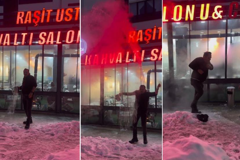 Sivas'ta yaşayan ve çektiği sosyal medya videoları ile ün salan tostçu Raşit Yıldırım, kentte etkili olan soğuk havayı takipçilerine göstermek istedi.