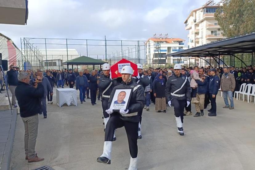 Gazipaşa Havalimanı'nda görevli polis memuru için Gazipaşa İlçe Emniyet Müdürlüğü önünde resmi cenaze töreni düzenlendi.