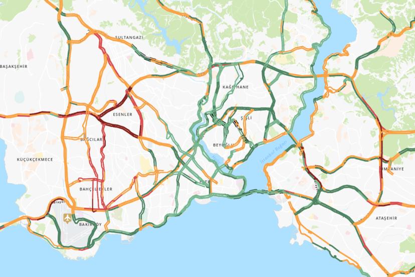 Kar yağışının devam ettiği İstanbul'un birçok bölgesinde, saat 07.15 itibarıyla trafik yoğun. Okullar tatil olmasına rağmen İBB trafik yoğunluk haritasında bazı ana arterler kırmızıya döndü, yoğunluk yüzde 80'e ulaştı.