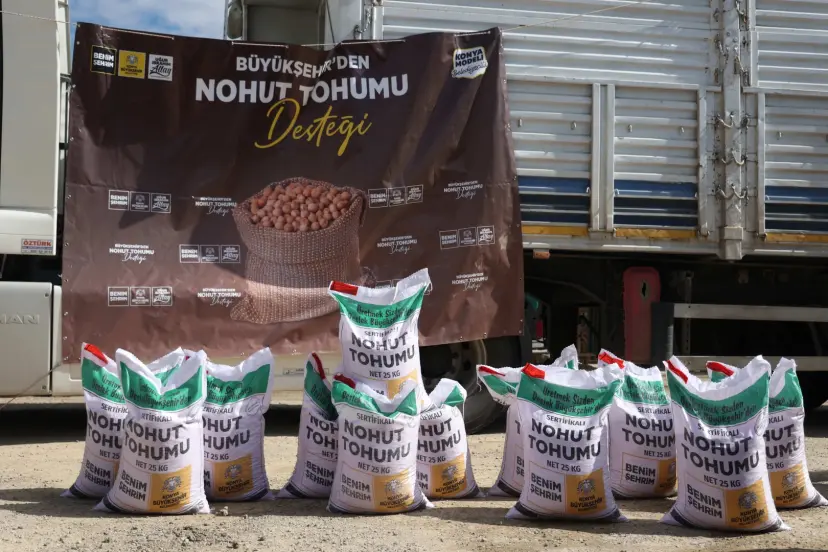 Konya Büyükşehir Belediyesi, az su isteyen ve iklim şartlarına daha dayanıklı ürünlerin yaygınlaştırılması amacıyla 31 ilçemizde başvuruları alınan çiftçilerimize yüzde 50 hibeli, 115 bin 875 kilogram nohut tohumu desteğinde bulundu. Amaç, daha az suyla daha fazla verim alabileceği bir üretim modeline geçişi desteklemek.