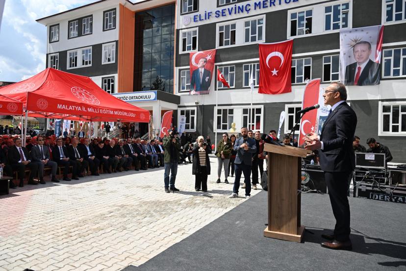 Deprem sonrası eğitim altyapısının güçlendirilmesi kapsamında Malatya'da hayırsever bir iş adamı tarafından yaptırılan Elif Sevinç Mertöz Ortaokulu'nun düzenlenen törenle açılışı gerçekleştirildi.