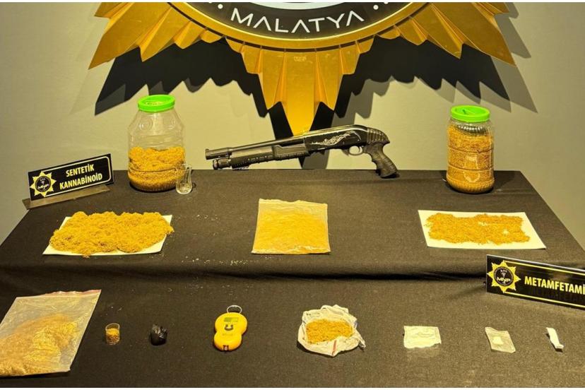Malatya’da yapılan operasyonlarda, çeşitli tür ve miktarlarda uyuşturucu madde ile silah ele geçirildi.