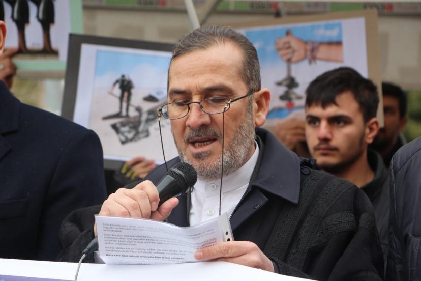"Bugün burada, sadece bir bölgenin değil, tüm insanlığın vicdan durağı olan Kudüs, Mescid-i Aksa ve Gazze’de yaşanan soykırıma dur demek; bu beldeleri elde etme adına siyonist yayılmacılığın küresel barışı nasıl bir uçuruma sürüklediğine dikkat çekmek ve İslam coğrafyasının dört bir yanında yakılan fitne ateşine karşı vahdeti haykırmak için toplanmış bulunmaktayız. Kudüs, yalnızca Filistin halkının değil, bütün Müslümanların ve bütün insanlığın ortak mirasıdır. Mescid-i Aksa ise Müslümanların ilk kıblesi ve mukaddes mabedlerinden biridir. Ancak bugün Kudüs, Mescid-i Aksa ve Gazze; siyonist işgal rejiminin sistematik saldırıları ve yayılmacı politikaları altında ağır bir kuşatma yaşamaktadır. İşgal rejimi israilin Gazze’de başlattığı ve bugün Lübnan’a, Suriye’ye, Yemen’e ve İran’a yaydığı çatışma süreci, asla bir ‘güvenlik’ meselesi değildir. Bu, ‘Arz-ı Mev’ud’ hezeyanıyla bölge ülkelerini zayıflatma, parçalama ve köleleştirme operasyonudur. Siyonist akıl, kendi güvenliğini komşu ülkelerin yıkımında aramakta, attığı her adımda dünya barışının altına dinamit döşemektedir. Bu saldırganlık, ‘israilin güvenliği’ bahanesi altında bütün bölgeyi dizayn etmeyi hedefleyen emperyal bir projeye dönüşmüş ve dünya barışını doğrudan tehdit eden bir boyuta ulaşmıştır."