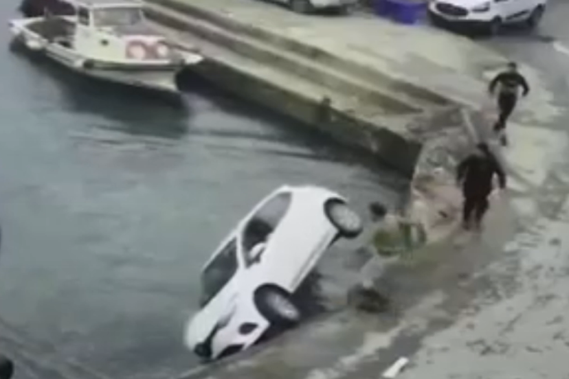 Otomobilin denize düşmesi, güvenlik kamerasınca kaydedildi.