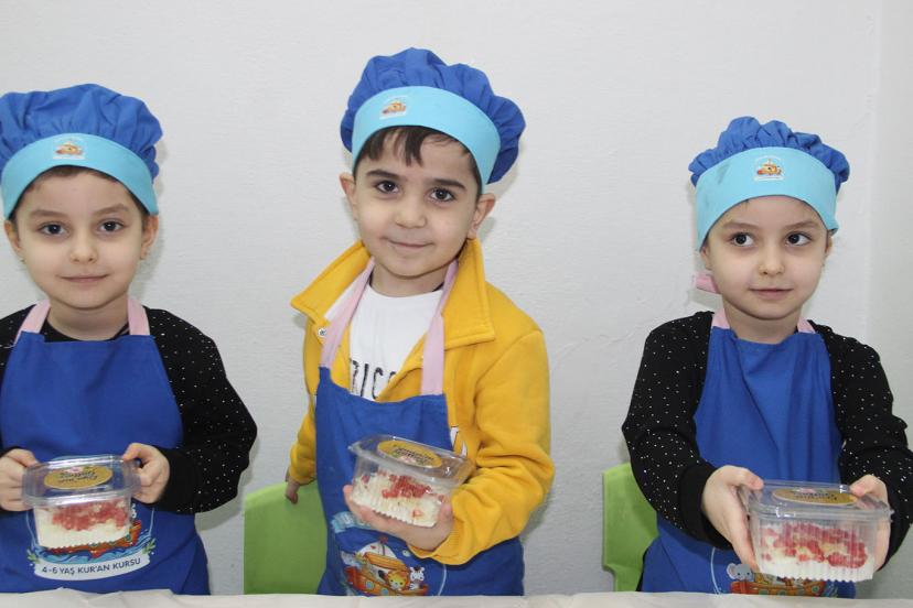 Cizre müftülüğüne bağlı Nuh’un Gemisi 4-6 Yaş Kur'an Kursu'nda eğitim gören minik öğrenciler, "Tekne Orucu" geleneğini yaşatarak tuttukları yarım günlük oruçlarını kendi elleriyle hazırladıkları güllaçlarla taçlandırdı.