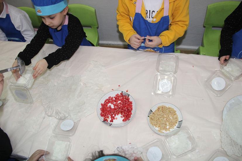 Tekne orucu tutan minikler aileleri için güllaç hazırladı