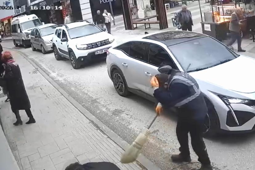 Olay anı çevredeki bir iş yerinin güvenlik kamerasınca görüntülendi.