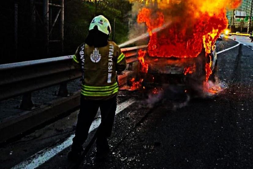 İstanbul TEM Otoyolu’nda hafif ticari araçta çıkan yangın, itfaiye ekiplerince söndürüldü.