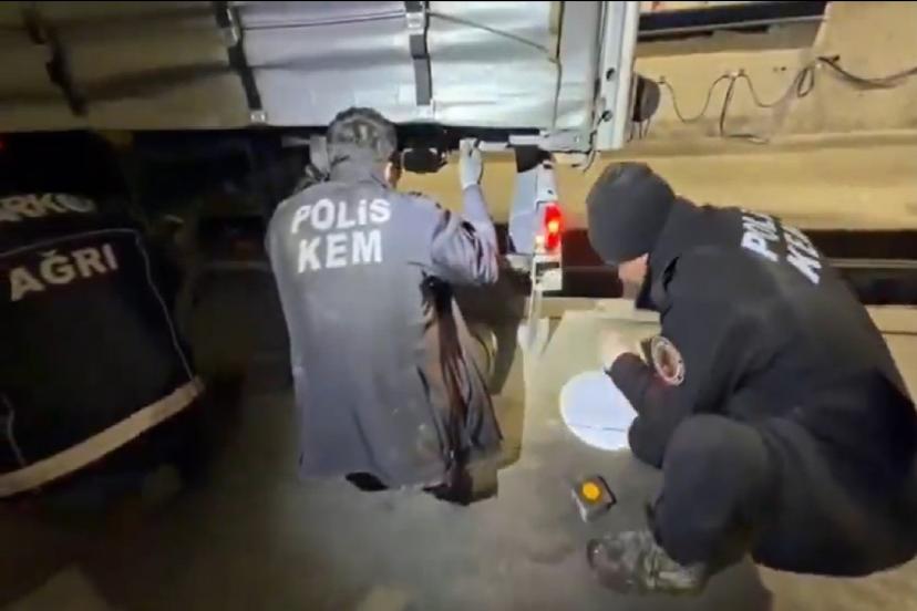 Ağrı Valiliği tarafından yapılan açıklamada, İl Emniyet Müdürlüğü Narkotik Suçlarla Mücadele Şube Müdürlüğü ekipleri, İran'dan Türkiye'ye uyuşturucu madde taşıdığı tespit edilen bir tırda arama yapıldığı belirtildi.