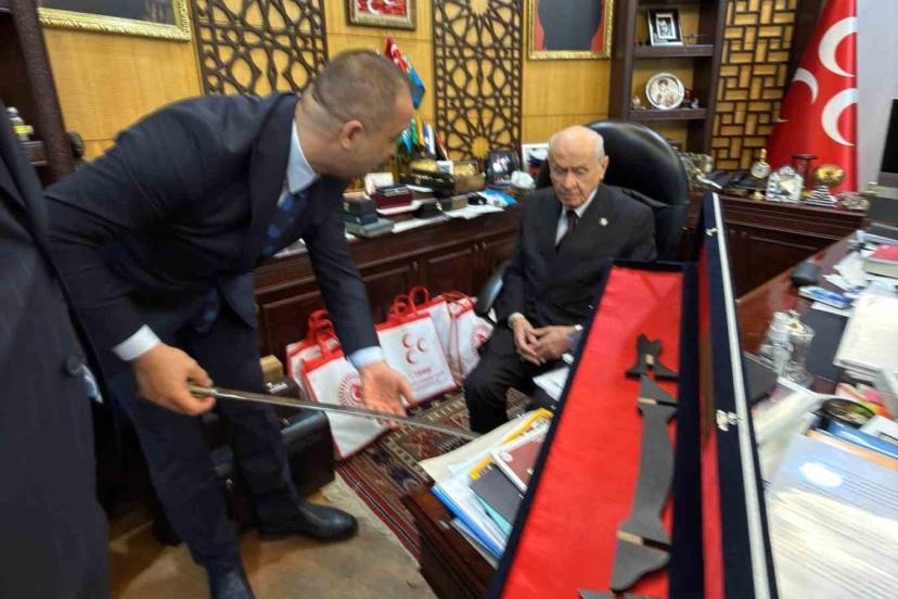 Başkan Yurdagül, Bahçeli’ye Osmanlı döneminden kalma kılıç hediye etti