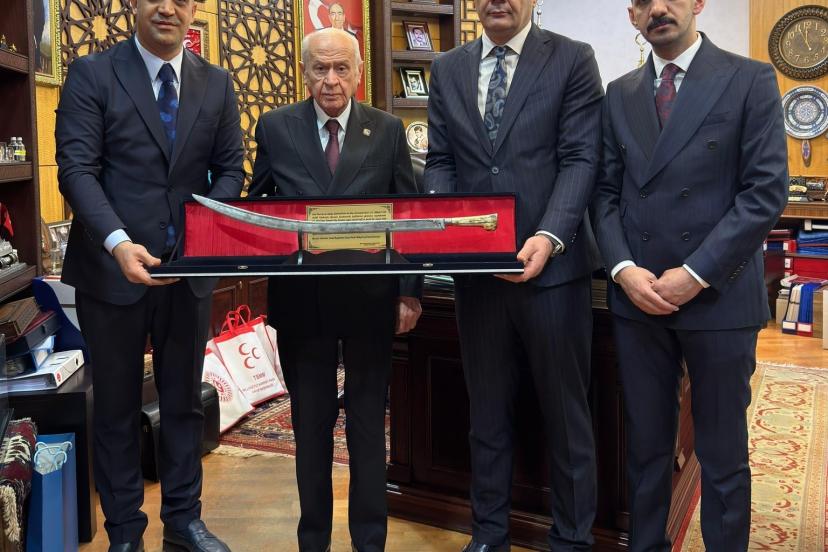 Milliyetçi Hareket Partisi Genel Başkanı Devlet Bahçeli ziyaret eden Yurdagül ve ekibi, Ramazan Ayında yapılan çalışmalarla alakalı bilgilendirmede bulunuldu ve kendisine Osmanlı döneminden kalma kılıç hediye etti.