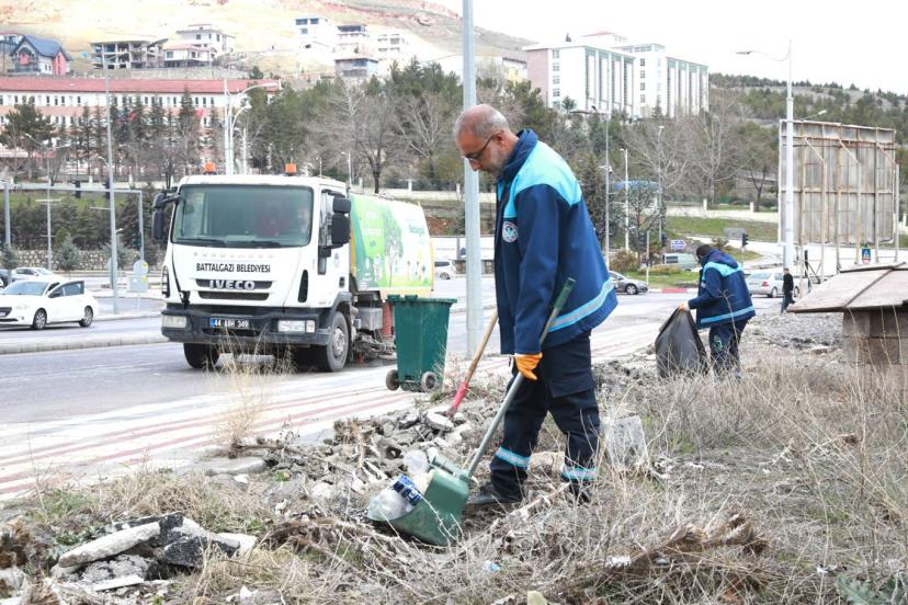Malatya'nın merkez ilçesi Battalgazi'de belediyeye bağlı Temizlik İşleri Müdürlüğü ekipleri, bayram ve etkili olan yağışların ardından ilçe genelinde temizlik çalışmalarını artırdı.