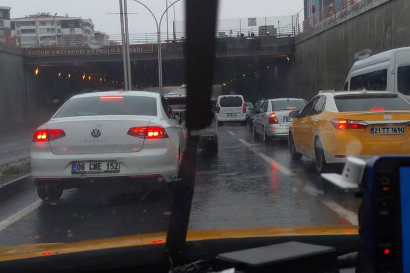 Dünya Kavşağı başta olmak üzere 75 Park Caddesi, Doğum Köprüsü altı ve Radisson Kavşağı çevresinde biriken yağmur suları, trafiği olumsuz etkiledi.