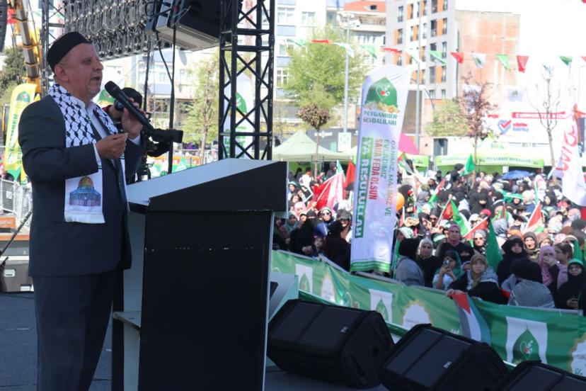 Ayrıca Mevlid-i Nebi etkinliğinin düzenlendiği alanda "ABD ve siyonistlerin Gazze'de katlettiği evlatlarımız" yazısıyla minik şehitlerin fotoğrafları ile "ABD ve siyonistlerin İran'da katlettiği evlatlarımız" yazısıyla da İran okul saldırısında şehit edilen çocukların fotoğraflar dikkat çekti.