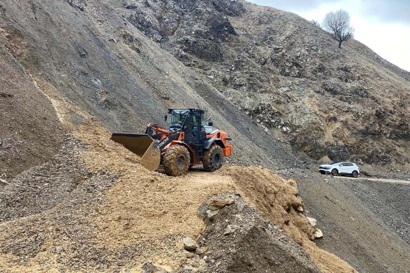 Heyelan nedeniyle kapanan yol açıldı