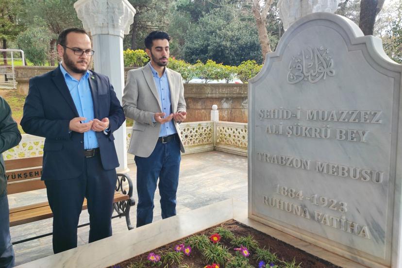 HÜDA PAR Trabzon İl Başkanı Hakan Özbay ve parti teşkilatı, Trabzon Mebusu Ali Şükrü Bey'in şehadetinin 103'üncü yıl dönümü münasebetiyle Şehid'in kabrini ziyaret etti.