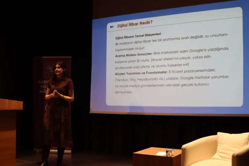 Eslem Hızır ise dijital itibar yönetimi, dijital varlıklar ve güven inşasıyla ilgili sunum gerçekleştirdi.