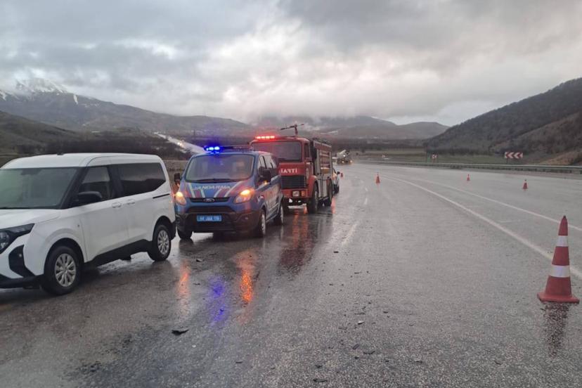 Edinilen bilgilere göre, yoğun yağıştan dolayı kayganlaşan yolda direksiyon hâkimiyetini kaybeden bir otomobil karşı yönden gelen tır'a çarptı.