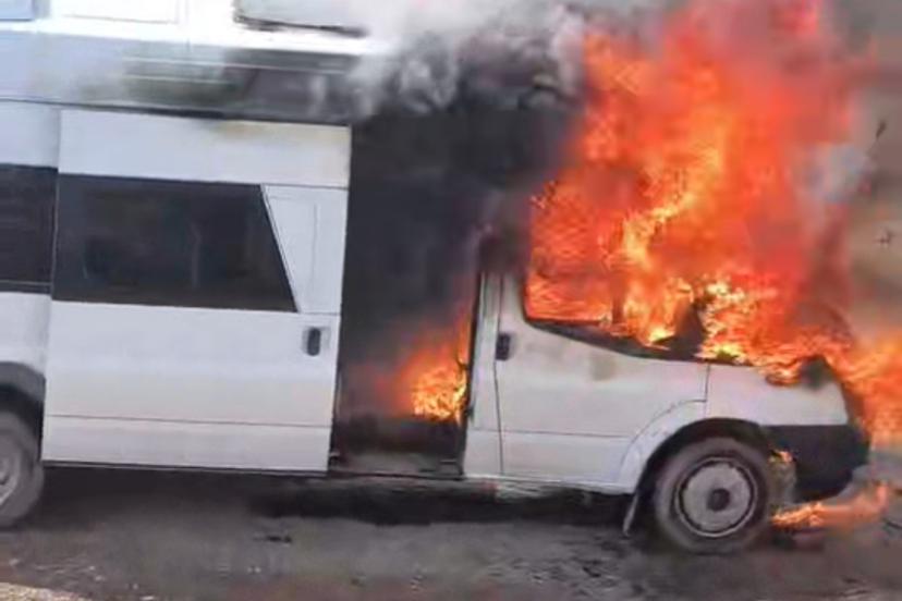 Ekiplerin müdahalesiyle yangın söndürülürken, minibüs kullanılamaz hale geldi.