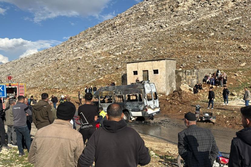 Mardin’in Dargeçit ilçesinde, içinde öğrencilerin bulunduğu servis minibüsü seyir halindeyken alev aldı.