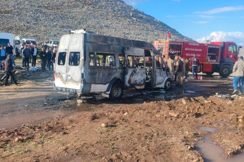 Mardin’de seyir halindeki öğrenci servisi alev aldı