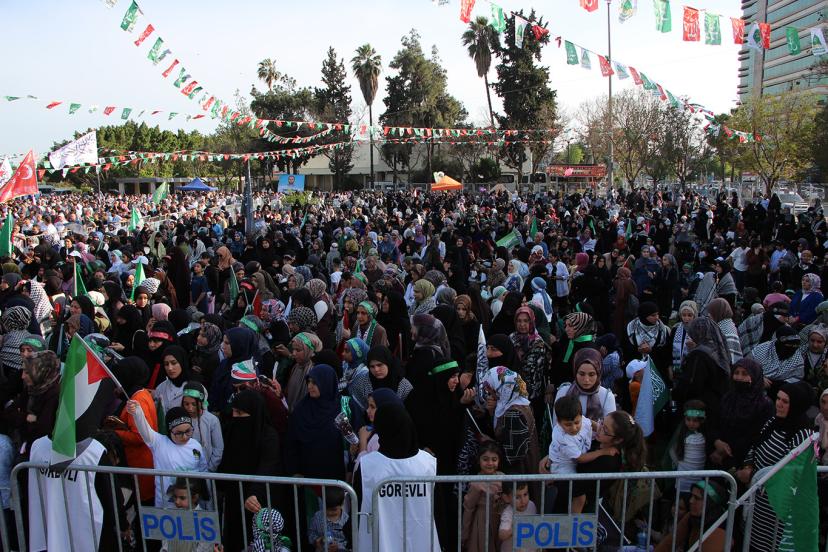 Peygamber Sevdalıları Vakfı tarafından Adana'da düzenlenen "Vahdet ve Kurtuluş Önderimiz Hazreti Muhammed" temalı Mevlid-i Nebi etkinliğinde kız çocukları ilahiler seslendirdi.
