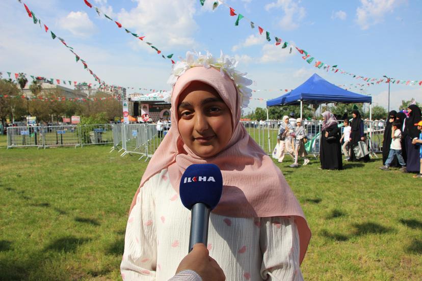 "Mutlu hissediyorum, ilk defa buraya geldim. Hiç gelmemiştim buraya, arkadaşlarımla beraber geldim. Bizi ablalar ve hocalar hazırladı. İlahi söyleyeceğiz. Gelmeyenler Peygamber Efendimizi umursamadıklarını ve istemediklerini düşünürüm."