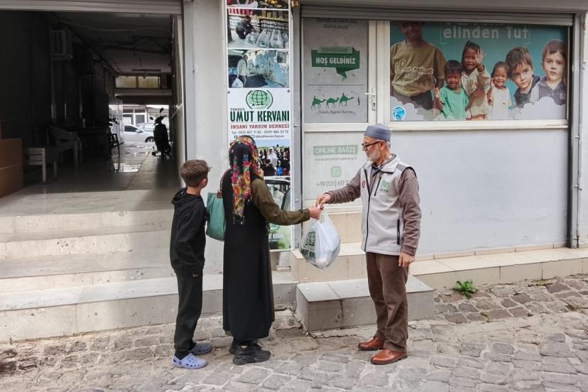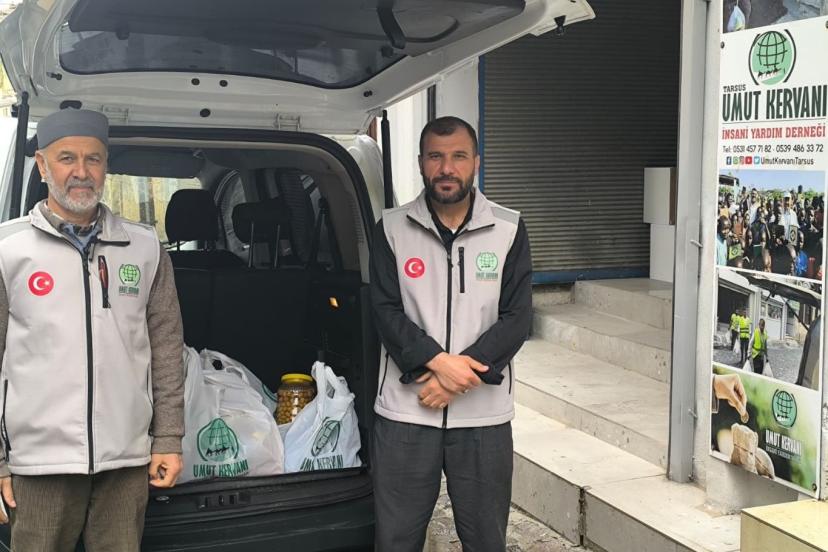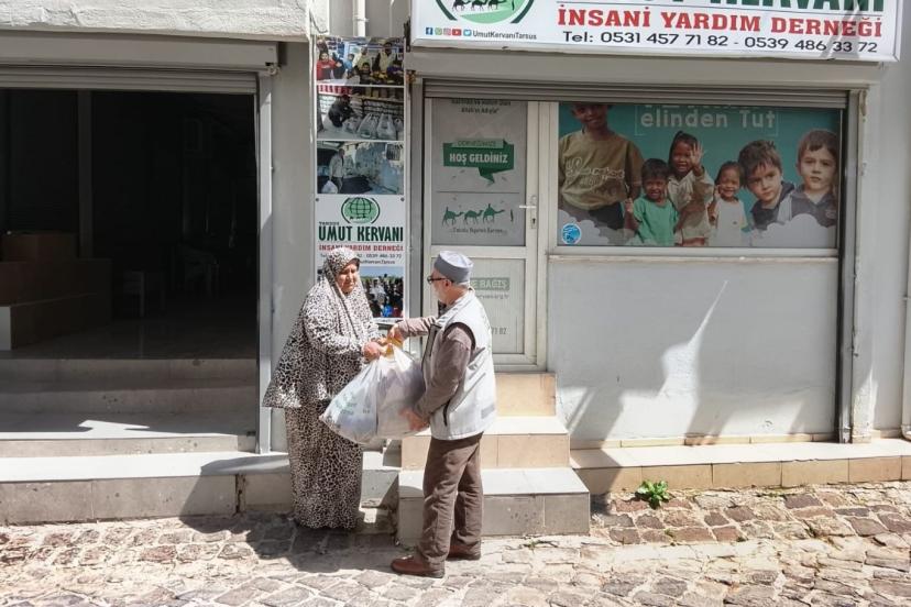 Tarsus’ta insani yardım faaliyetlerini sürdüren Umut Kervanı Derneği, hayırseverlerin bağışlarıyla temin edilen gıda ürünlerini mağdur ailelere ulaştırdı.